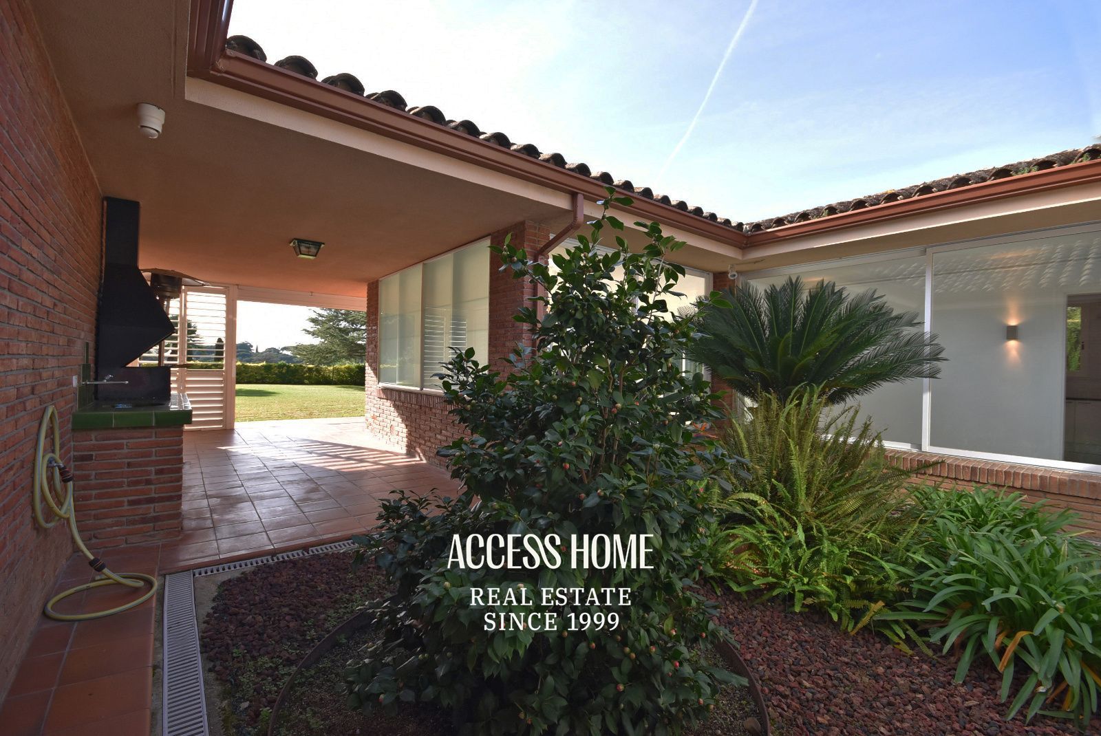 La propiedad destaca por su comodidad y funcionalidad. Dispone de un amplio y luminoso salón-comedor con chimenea y grandes ventanales que permiten la entrada de abundante luz natural y ofrecen una agradable conexión con el exterior. La cocina, tipo office, cuenta con salida directa al porche y al jardín, ideal para el día a día y para disfrutar de reuniones al aire libre.