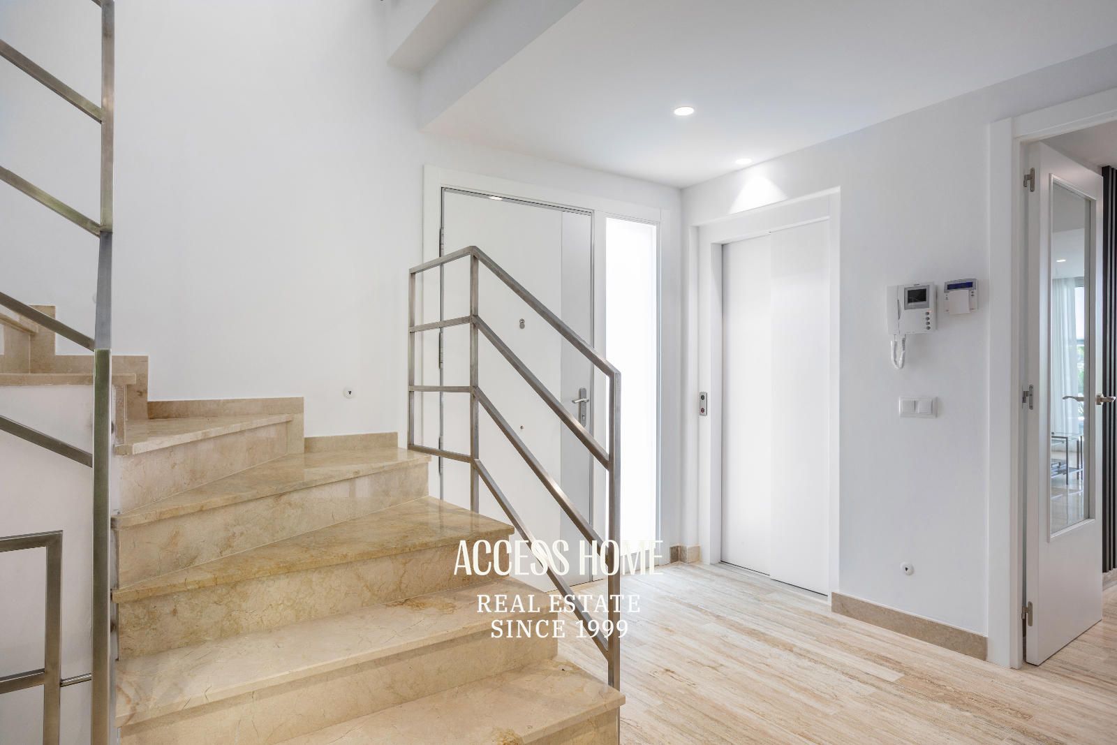 La propiedad está distribuida en tres plantas conectadas entre sí mediante escalera y ascensor.