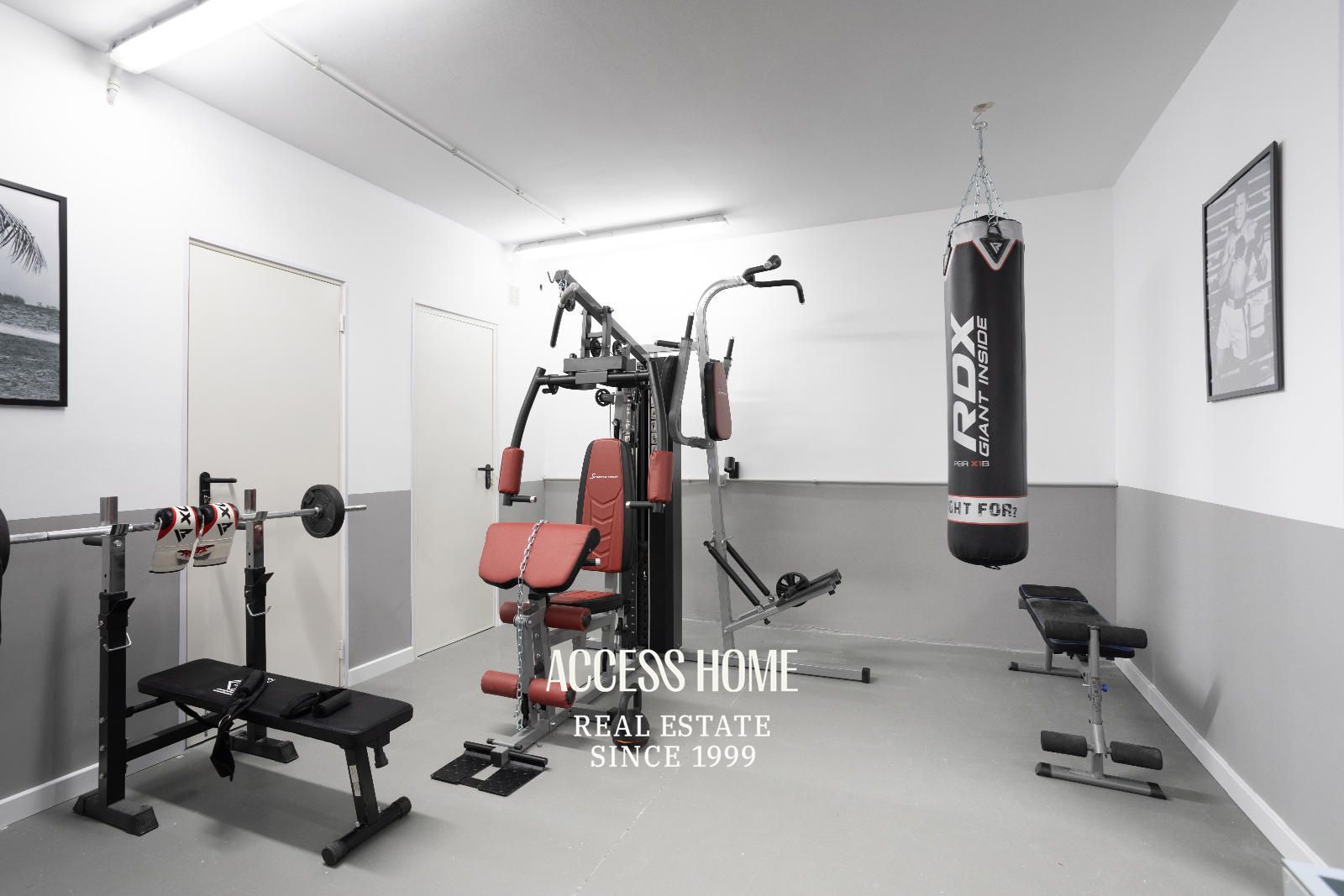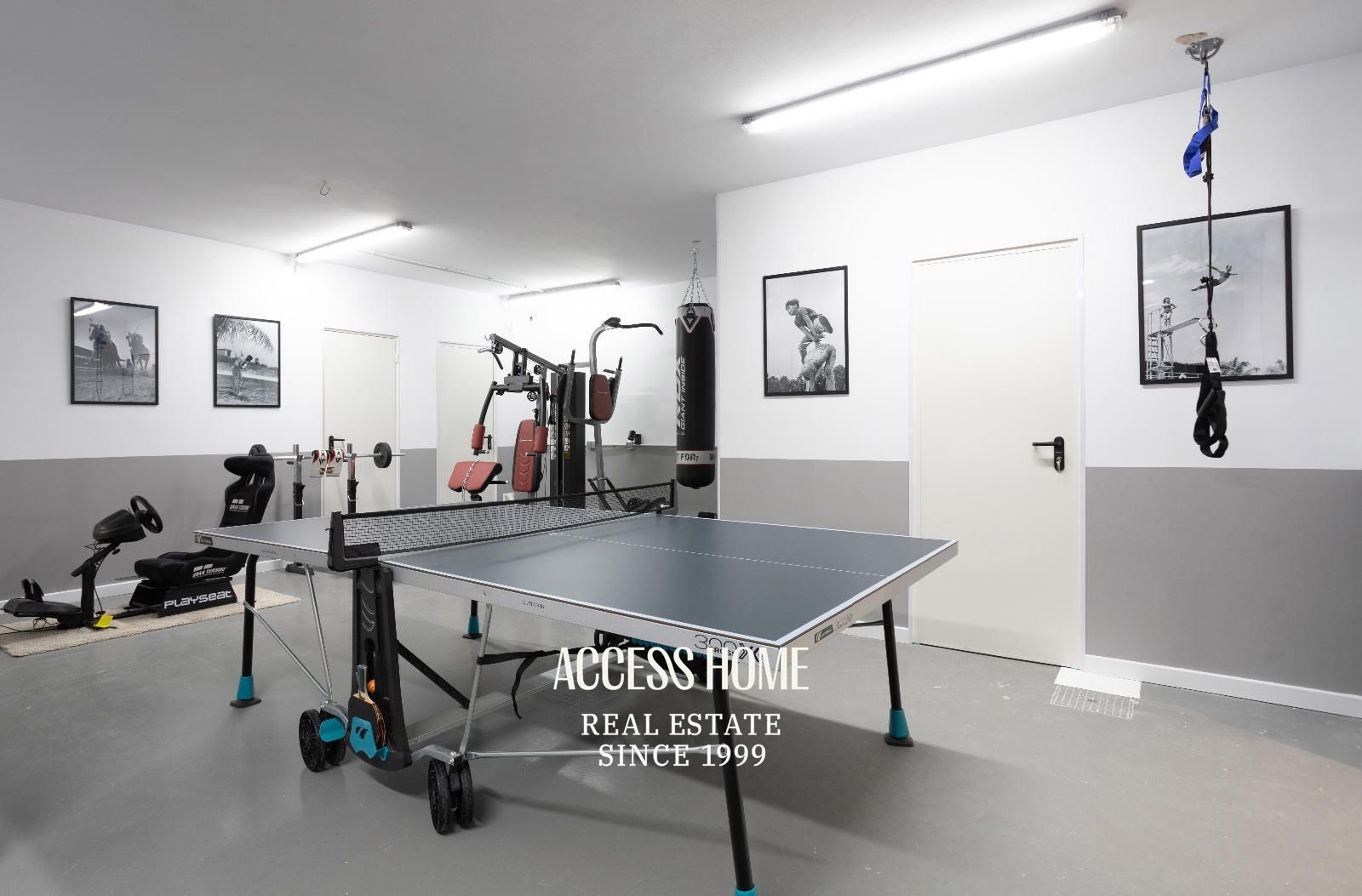La planta inferior cuenta con una habitación doble y un aseo. Además, gimnasio y zona de juegos. Y el garaje con capacidad para un vehículo.