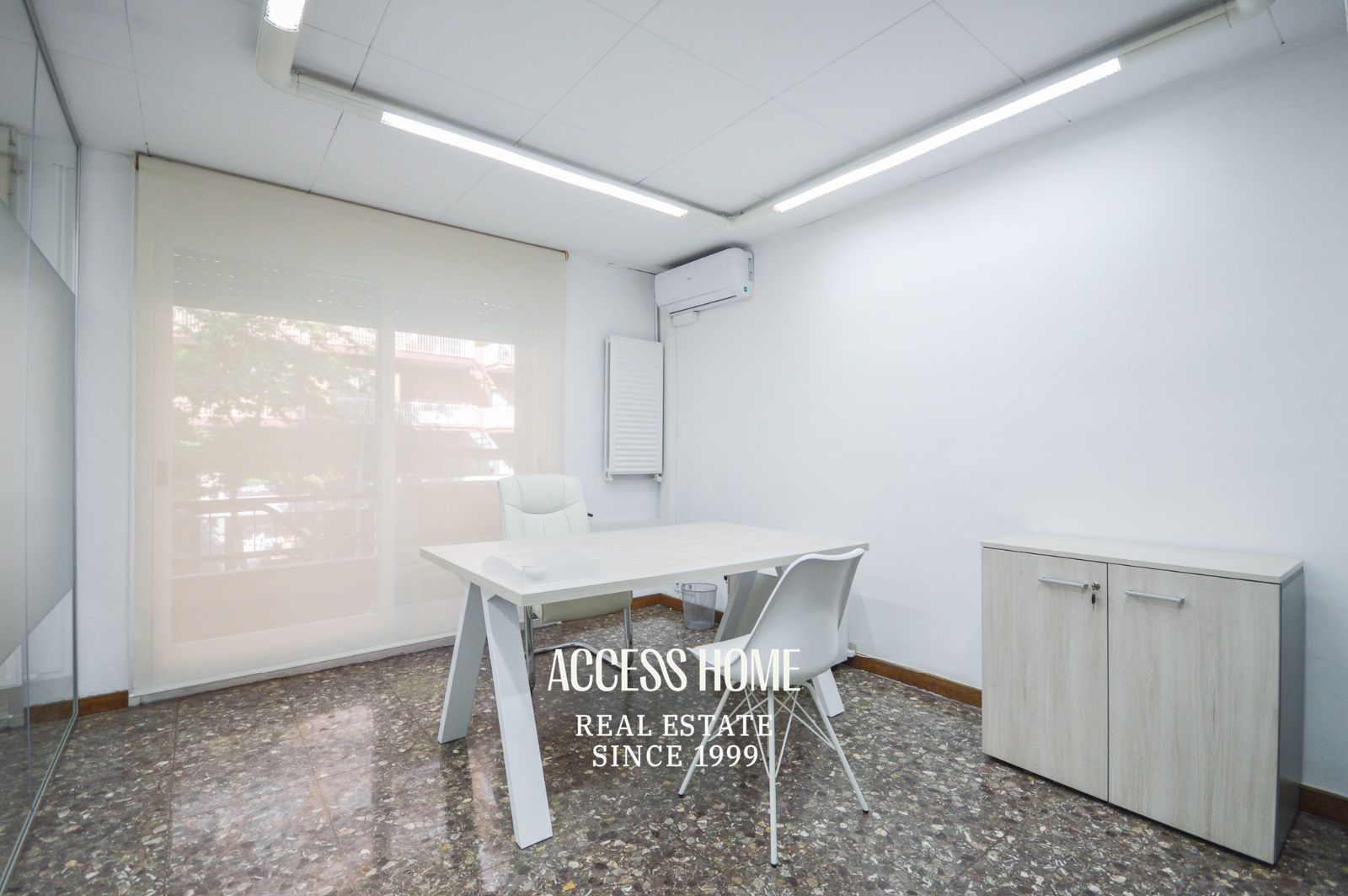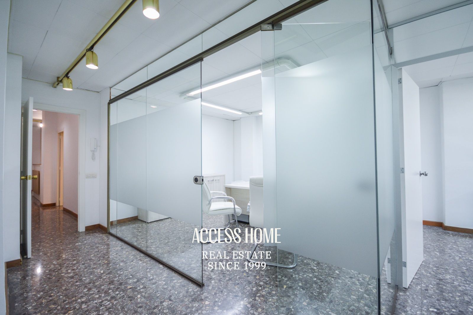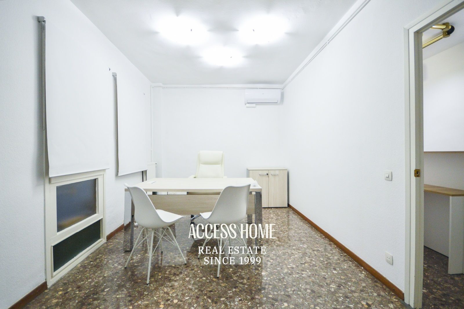 En su interior ofrece 4 despachos, dos más amplios y exteriores de 20m2 y 16m2 ambos con aire acondicionado y otros dos de 12m2 y 14m2, respectivamente. En la misma planta tiene un sala de espera, un baño y un cuarto de lavandería. Dispone de fibra óptica y también de calefacción a gas.