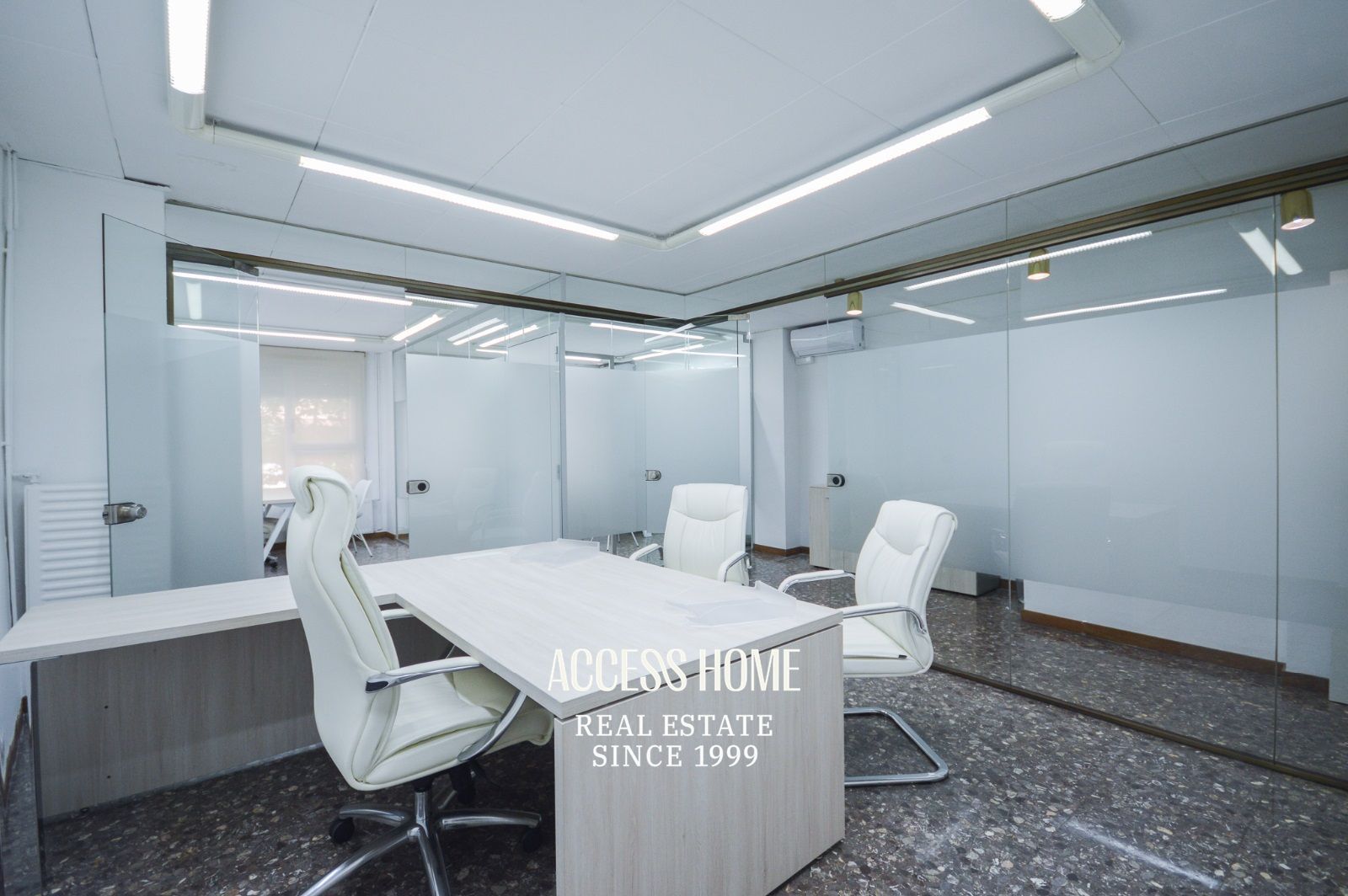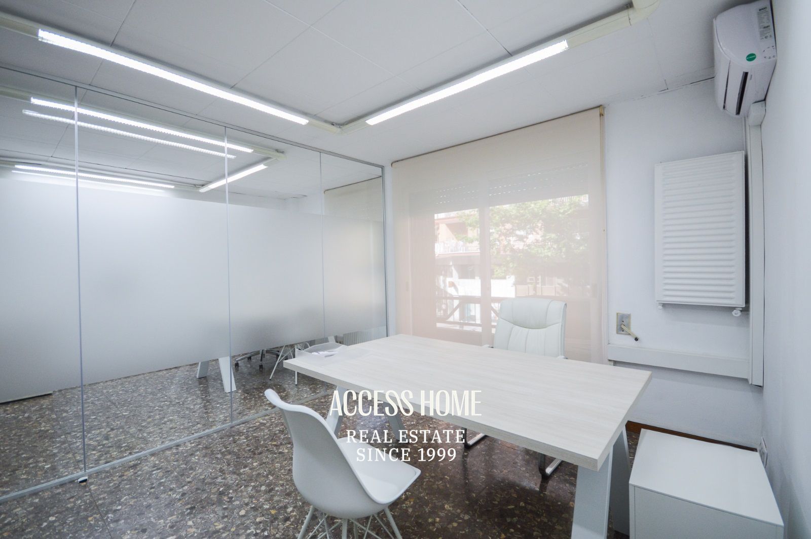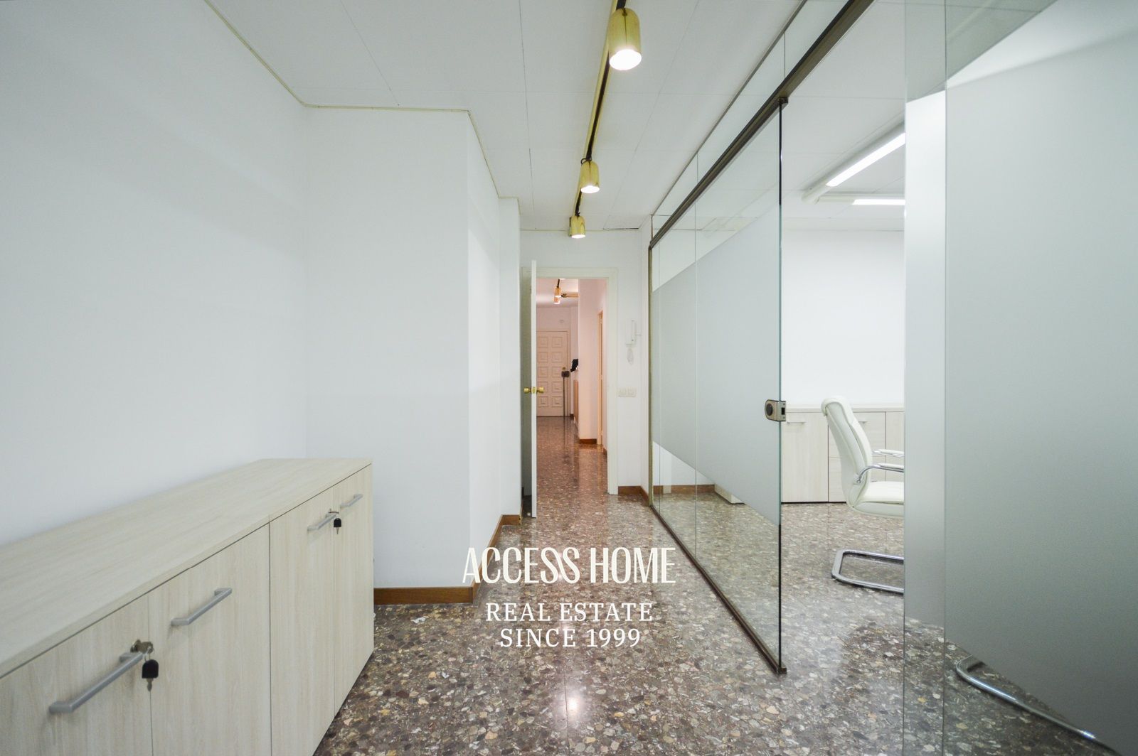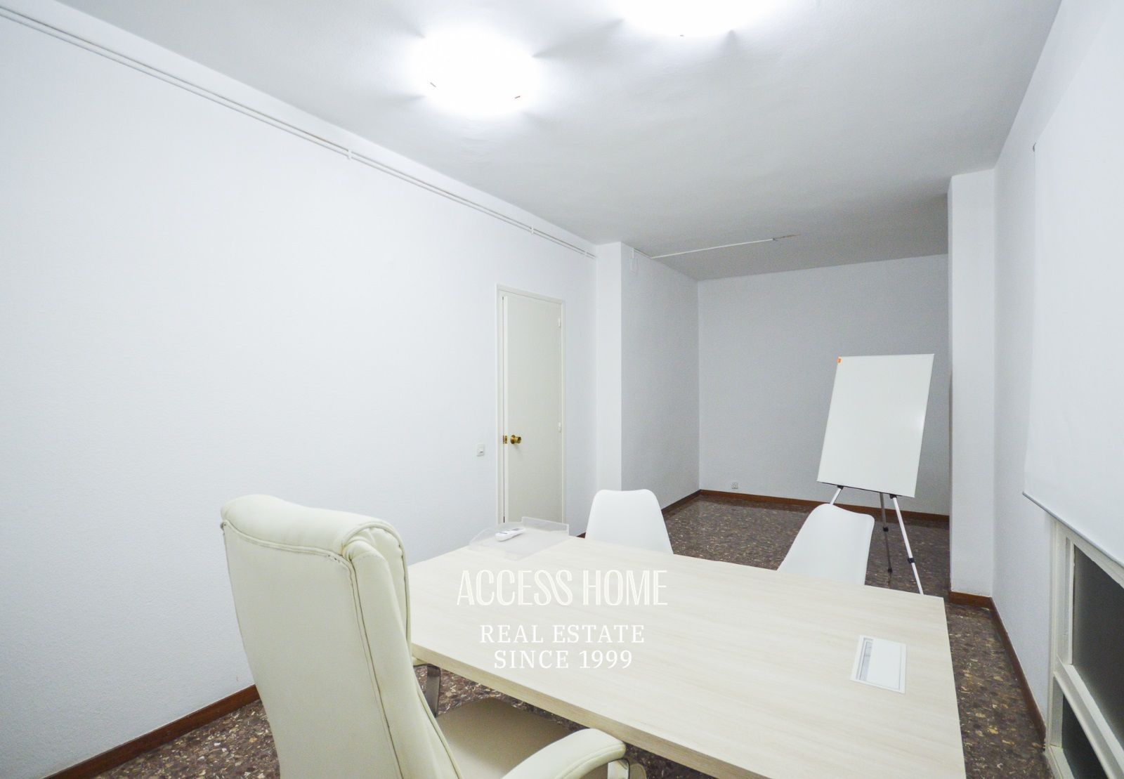 En su interior ofrece 4 despachos, dos más amplios y exteriores de 20m2 y 16m2 ambos con aire acondicionado y otros dos de 12m2 y 14m2, respectivamente. En la misma planta tiene un sala de espera, un baño y un cuarto de lavandería. Dispone de fibra óptica y también de calefacción a gas.