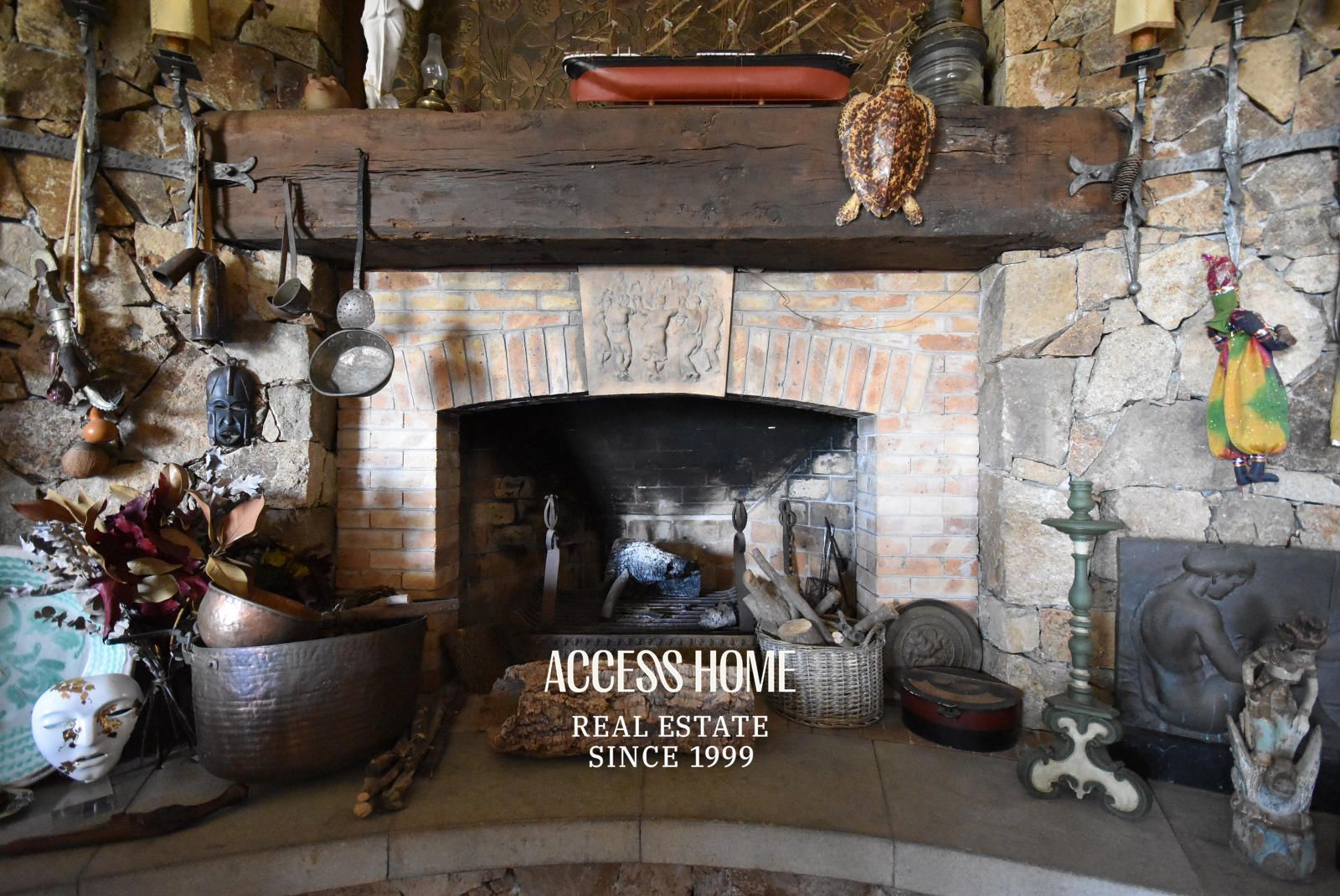 Mediante unas escaleras artesanales de madera, accedemos a la planta superior, que dispone de dos suites con baños privados, tres habitaciones dobles y un baño completo. Además, con acceso independiente, un apartamento con cocina propia, zona de estar con chimenea, dos habitaciones y un baño.
