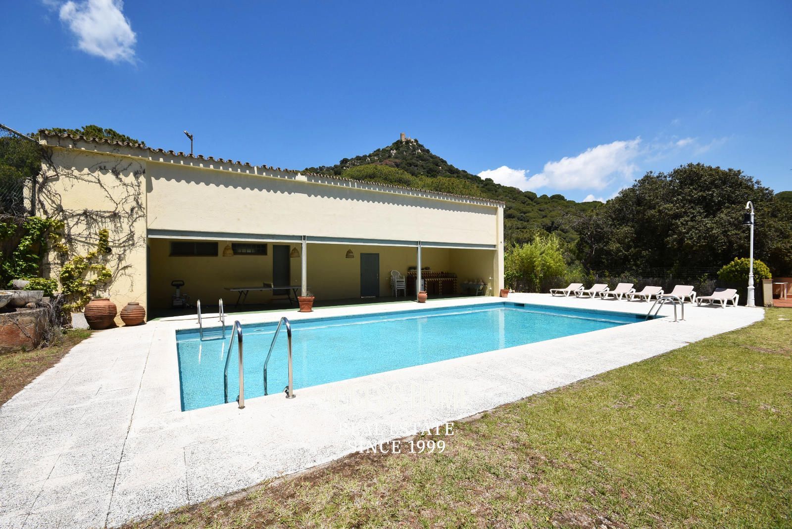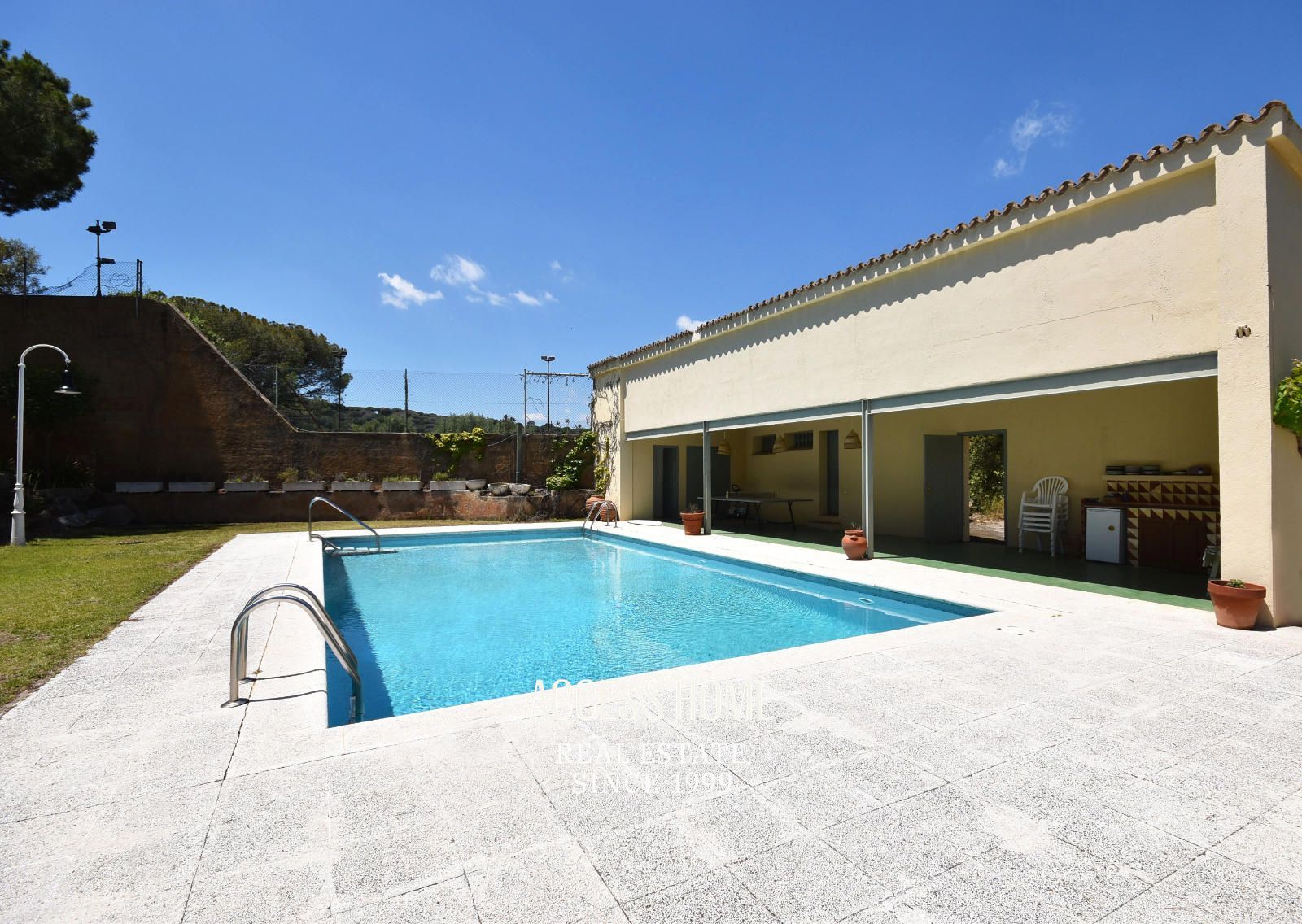 En el exterior una gran pista de tenis y una piscina privada.